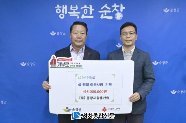 [½Ã»çÁ¾ÇսŹ® = ¿À½ÂÅà ±âÀÚ] ¢ßµ¿±¤ÀçȰ¿ë»ê(´ëÇ¥ ±è¾ç¼ú)ÀÌ Áö³ 22ÀÏ ¼øÃ¢±ºÃ»À» ¹æ¹®ÇØ ¼³ ¸íÀýÀ» ¸Â¾Æ °ü³» ¾î·Á¿î ÀÌ¿ôÀ» À§ÇÑ ¼º±Ý 500¸¸¿øÀ» ±âŹÇß´Ù.