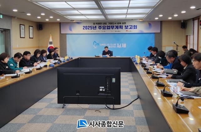 Á¤¼ºÁÖ ±èÁ¦½ÃÀåÀº ¡°2025³â¿¡´Â ¡®´õ Ưº°ÇÑ ³»ÀÏ, ±âȸµµ½Ã ±èÁ¦¡¯ ½ÇÇöÀ» À§ÇØ ´õ Ưº°ÇÑ ¸¶À½À¸·Î ¼ºÀåÀ» ³Ñ¾î ¼º°øÀ¸·Î, ÃÖ¼±À» ³Ñ¾î ÃÖ°í¸¦ ÇâÇØ ³ª¾Æ°¡°Ú´Ù¡±¶ó¸ç ¡°´õ ¼¼½ÉÇÏ°Ô »ìÇǰí, ´õ Á¤¼º½º·´°Ô ´Ùµë¾î¼ ÀÛÀº º¯ÈµéÀ» ¸¸µé°í, ±×·± ÀÛÀº º¯ÈµéÀÌ ½×ÀÌ°í ½×¿© ½Ã¹Î ¸ðµÎ°¡ ü°¨ÇÏ´Â Å« º¯È¸¦ ÀÌ·ê ¼ö ÀÖµµ·Ï ÇÑÄ¡ÀÇ ¼ÒȦÇÔµµ ¾øÀÌ ½ÃÁ¤ ¿î¿µ¿¡ ÃÖ¼±À» ´Ù Çϰڴ١±°í ¸»Çß´Ù. ÀÌ¾î ¡°Ãֱ٠ȥ¶õ½º·¯¿î ¿©·¯ »óȲ¿¡ Æí½ÂÇÏÁö ¸»°í, ¿ÀÁ÷ ½Ã¹Î¸¸À» ¹Ù¶óº¸¸ç Èçµé¸² ¾øÀÌ ½ÃÁ¤¿¡ ÀÓÇØ´Þ¶ó¡±¸ç ¡°ÇöÀç ¾î·Á¿î °æÁ¦ ¿©°ÇÀ» °í·ÁÇØ¼ ¹Î»ý°æÁ¦È¸º¹ Á¤Ã¥°ú ±¹°¡¿¹»ê È®º¸¿¡µµ ÇàÁ¤·ÂÀ» ÁýÁßÇØ´Þ¶ó¡±°í ´çºÎÇß´Ù.