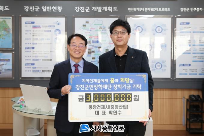 *»çÁø¼³¸í: (¸í)°ÁøÁÖ·ù ±èÈ£Á¦ ´ëÇ¥, Áß¾Ó°ÇÀç»ç(Áß¾Ó»ê¾÷) ¹Ú¿¬¼ö ´ëÇ¥, ³ó¼öƯ»ê¹° Á÷°Å·¡»ç¾÷´Ü ÃÖÁøÈ£ ´ÜÀåÀÌ ÃÖ±Ù °Áø±º¹ÎÀåÇÐÀç´Ü¿¡ ÀåÇбÝÀ» Àü´ÞÇß´Ù.