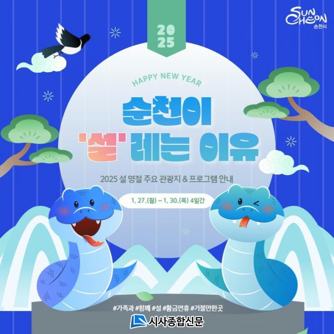 ½Ã´Â Á÷¿µÀ¸·Î ¿î¿µÇÏ´Â °ü±¤½Ã¼³ ¼øÃµ¸¸±¹°¡Á¤¿ø, ¼øÃµ¸¸½ÀÁö, µå¶ó¸¶ÃÔ¿µÀå, ¼øÃµ ³«¾ÈÀ¾¼º, »Ñ¸®±íÀº ³ª¹«¹Ú¹°°ü µî 5°³¼Ò¿¡¼ ¼³ ¿¬ÈޱⰣ(1.28.~1.30.) ÇѺ¹À» Âø¿ëÇÑ °ü±¤°´¿¡°Ô´Â ¹«·á ÀÔÀå ÇýÅÃÀ» Á¦°øÇÑ´Ù.