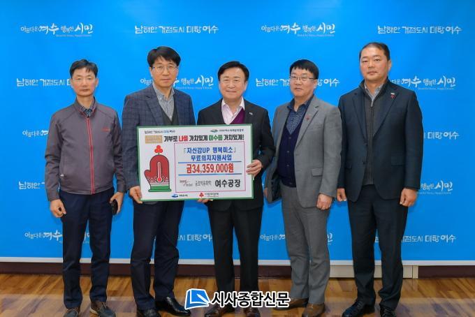 [½Ã»çÁ¾ÇսŹ® = ¿À½ÂÅà ±âÀÚ] ¿©¼ö½Ã(½ÃÀå Á¤±â¸í)´Â ±ÝÈ£¼®À¯ÈÇÐ ¿©¼ö°øÀå(°øÀåÀå Àå°©Á¾)ÀÌ Áö³ 22ÀÏ »ýȰÀÌ ¾î·Á¿î ÁßÀå³âÃþÀÇ ¹«·á ÀÇÄ¡ Áö¿ø »ç¾÷¿¡ 3,435¸¸ 9,000¿øÀ» ÈÄ¿øÇß´Ù°í ¹àÇû´Ù.