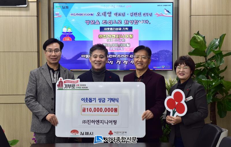 [½Ã»çÁ¾ÇսŹ® = ¿À½ÂÅà ±âÀÚ] ±èÁ¦½Ã(½ÃÀå Á¤¼ºÁÖ)´Â 24ÀÏ, ¢ß)ÁøÇÏ¿£Áö´Ï¾î¸µ(´ëÇ¥ À¯Àº¼ö)ÀÌ ÀÌ¿ôµ½±â ¼º±Ý 1,000¸¸ ¿øÀ» ±âŹÇϸç Èñ¸Á 2025 ³ª´® Ä·ÆäÀο¡ µ¿ÂüÇß´Ù°í ¹àÇû´Ù.