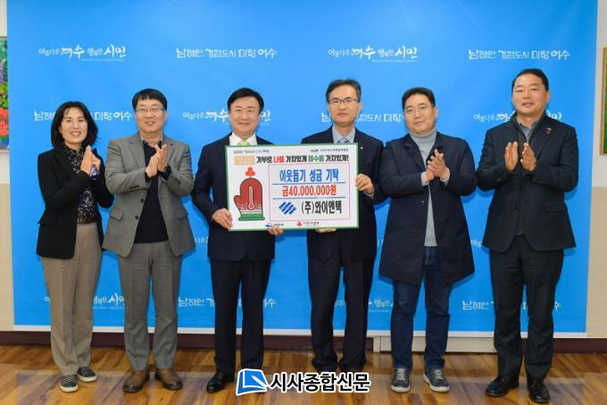 [½Ã»çÁ¾ÇսŹ® = ¿À½ÂÅà ±âÀÚ] ¿©¼ö½Ã(½ÃÀå Á¤±â¸í)´Â ¢ß¿ÍÀÌ¿£ÅØÀÌ Áö³ 23ÀÏ ¼³ ¸íÀýÀ» ¸Â¾Æ Àú¼Òµæ ¼Ò¿Ü°èÃþÀ» À§ÇÑ ¼º±Ý 4õ¸¸ ¿øÀ» Àü´ÞÇß´Ù°í ¹àÇû´Ù.