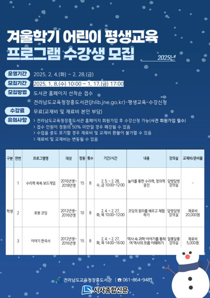 [½Ã»çÁ¾ÇսŹ® = ¿À½ÂÅà ±âÀÚ] ÀåÈïµµ¼°ü(°üÀå ÀÌ¿µÈ)Àº °Ü¿ï¹æÇÐÀ» ¸Â¾Æ ´Ù¾çÇÑ ±³À° ±âȸ¸¦ Á¦°øÇϰíÀÚ ¿À´Â 2¿ù 4ÀÏ(È)ºÎÅÍ °Ü¿ïÇб⠾ÀÌ Æò»ý±³À° ÇÁ·Î±×·¥À» ¿î¿µÇÑ´Ù.