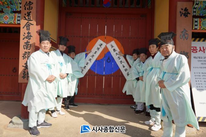 [½Ã»çÁ¾ÇսŹ® = °À±¿À ±âÀÚ] ÀÔÃá(Ø¡õð)À» ¸Â¾Æ 3ÀÏ ÇØ³²Çâ±³¿¡¼ À¯¸²È¸¿øµéÀÌ ÀÔÃá¹æÀ» Çâ±³ ¿Ü»ï¹®¿¡ ºÙÀ̰í ÀÖ´Ù.