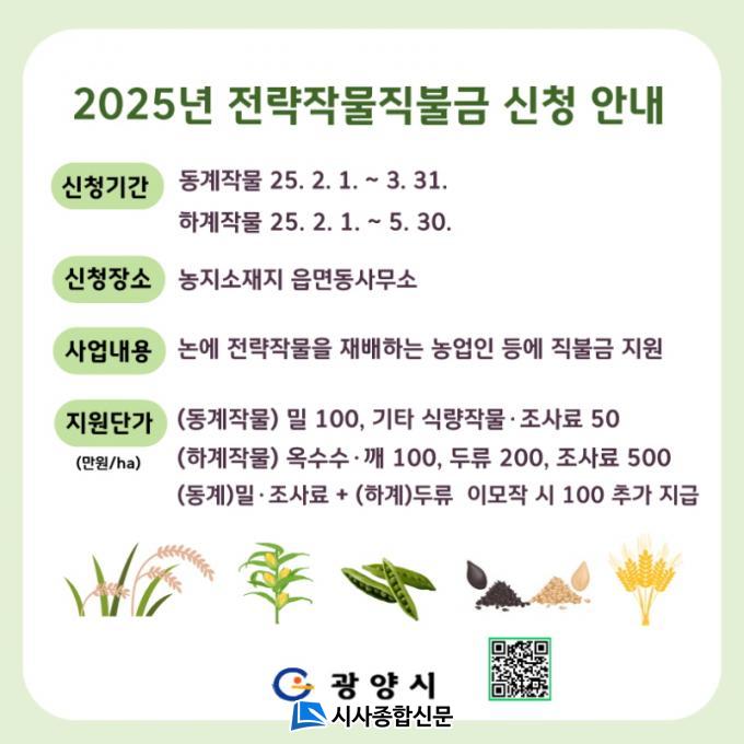 Àü·«ÀÛ¹°Á÷ºÒ±ÝÀº 2024³â 10¿ùºÎÅÍ 2025³â 11¿ù±îÁö ³í¿¡ º ´ë½Å ¼öÀÔÀÇÁ¸µµ°¡ ³ôÀº Àü·« ÀÛ¹°À» Àç¹èÇÏ´Â ³ó¾÷Àο¡°Ô Áö±ÞÇÏ´Â Á÷ºÒ±ÝÀÌ´Ù.