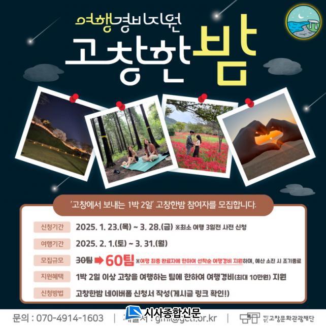 5ÀÏ °í⹮Ȱü±¤Àç´Ü¿¡ µû¸£¸é ¿©Çà°æºñ Áö¿ø»ç¾÷(°íâÇѹã)ÀÇ 2~3¿ù ¸ðÁý ±Ô¸ð¸¦ ±âÁ¸ 30ÆÀ¿¡¼ 60ÆÀÀ¸·Î ´Ã¸°´Ù.