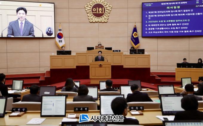 Àü¶ó³²µµ±³À°Ã»Àº 5ÀÏ ¿¸° Àü¶ó³²µµÀÇȸ Á¦387ȸ ÀÓ½Ãȸ 1Â÷ º»È¸ÀÇ¿¡¼ ±è´ëÁß ±³À°°¨ÀÇ ¡®2025 ±³À°ÇàÁ¤ º¸°í¡¯¸¦ ÅëÇØ ÀÌ·± ³»¿ëÀ» °ñÀÚ·Î ÇÑ ¿ÃÇØ ÁÖ¿ä ±³À°Á¤Ã¥ ¹æÇâÀ» ¹àÇû´Ù.