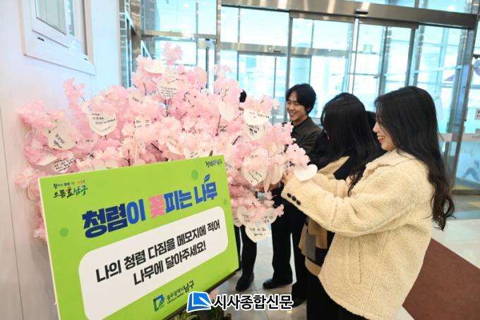 6ÀÏ ³²±¸¿¡ µû¸£¸é ±¸Ã» °øÁ÷ÀÚµéÀº ÃÖ±Ù Á¾ÇÕû»ç Á¤¹® ÃâÀÔ¹® Àαٿ¡ ºÐÈ«ºû »öäÀÇ Ã»·Å ³ª¹«¸¦ ½É¾ú´Ù. °øÁ÷»çȸ»Ó¸¸ ¾Æ´Ï¶ó ³²±¸ Áö¿ª»çȸ Àü¹Ý¿¡ û·ÅÇÑ ¹®È¸¦ È®»êÇϱâ À§ÇÔÀÌ´Ù.