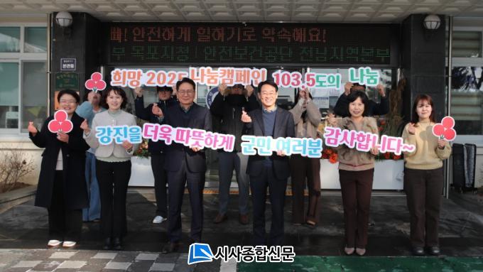 [½Ã»çÁ¾ÇսŹ® = ¿À½ÂÅà ±âÀÚ] °Áø±ºÀÌ Àü¶ó³²µµ»çȸº¹Áö°øµ¿¸ð±Ýȸ¿Í ÇÔ²²ÇÑ ¡®Èñ¸Á 2025 ³ª´® Ä·ÆäÀΡ¯À» 2024³â 12¿ù 1ÀϺÎÅÍ 2025³â 1¿ù 31ÀϱîÁö ÃÑ 62Àϰ£ ÁøÇàÇß´Ù. À̹ø Ä·ÆäÀο¡¼ ¸ð±ÝµÈ ±Ý¾×Àº Çö¹°°ú Çö±ÝÀ» Æ÷ÇÔÇØ ÃÑ 3¾ï 2,900¸¸ ¿øÀ¸·Î, ¸ñÇ¥¾×ÀÎ 3¾ï 1,800¸¸ ¿øÀ» ³Ñ¾î »ç¶ûÀÇ ¿Âµµ 103.5µµ¸¦ ´Þ¼ºÇϸç ÈÆÈÆÇÑ ³ª´®ÀÇ ¿Â±â¸¦ ´õÇß´Ù.
