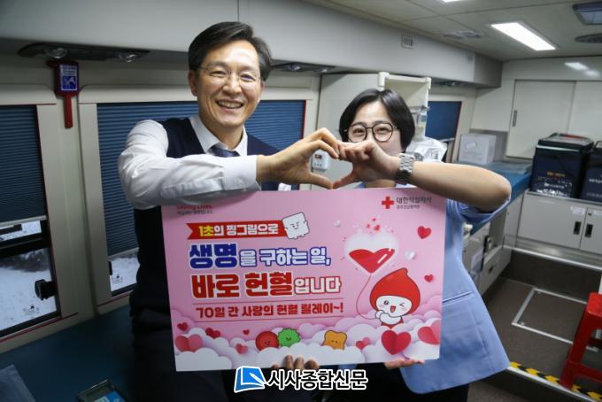 [½Ã»çÁ¾ÇսŹ® = ¿À½ÂÅà ±âÀÚ] ¿µ¾Ï±º(¿ì½ÂÈñ ±º¼ö)ÀÌ 5ÀÏ ´ëÇÑÀû½ÊÀÚ»ç ±¤ÁÖ¡¤Àü³²Ç÷¾×¿ø°ú ÇÔ²² ±ºÃ» ±¤Àå¿¡¼ ¡®»ý¸í³ª´® ÇåÇ÷°ú Ä·ÆäÀΡ¯°ú ´Üü ÇåÇ÷À» ½Ç½ÃÇß´Ù.