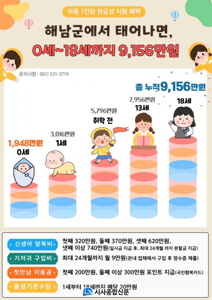 ¿ÃÇØ´Â 2024³â»ý Ãâ»ý¾Æ°¡ 1¼¼°¡ µÇ´Â ½Ã±âºÎÅÍ¡®Ãâ»ý±âº»¼ö´ç¡¯À» Áö¿øÇÏ´Â °¡¿îµ¥ ÇØ³²±ºÀº Ãâ»êºÎÅÍ º¸À°, ±³À°¿¡ À̸£´Â źźÇÑ Áö¿øÃ¼°è¸¦ ±¸ÃàÇØ¡®¾ÆÀ̳º°í ±â¸£±â ÁÁÀº ÇØ³²¡¯À» ±¸ÃàÇϰí ÀÖ´Ù.