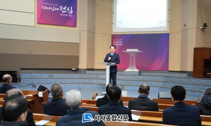 | ±è¿µ·Ï Àü¶ó³²µµÁö»ç°¡ 8ÀÏ ±¤¾ç ´ë±¤±³È¸¿¡¼ ¿¸° ¡®¼øÃµ³ëȸ ³²¼±±³È¸¿¬ÇÕȸ 2025³â ½Å³âÇÏ·Êȸ¡¯¿¡¼ Âü¼®ÀÚµé°ú ±â³äÃÔ¿µÀ» Çϰí ÀÖ´Ù. |