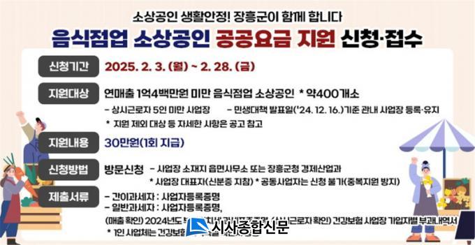 Áö¿ø ´ë»ó ¼Ò»ó°øÀÎÀº 2024³â 12¿ù 16ÀÏ ±âÁØ ÀåÈﱺ¿¡ »ç¾÷ÀåÀ» µÎ°í ¿î¿µ ÁßÀÎ À½½ÄÁ¡¾÷ÀÌ´Ù. Áö¿ø ´ë»óÀÚ´Â »ç¾÷ÀÚµî·ÏÁõ¸í µî °ü·Ã¼·ù¸¦ ÁöÂüÇÏ¿© 2¿ù 28ÀϱîÁö »ç¾÷Àå ¼ÒÀçÁö ÇàÁ¤º¹Áö¼¾ÅÍ ¶Ç´Â ÀåÈﱺû °æÁ¦»ê¾÷°ú·Î ¹æ¹®ÇÏ¿© ½ÅûÇÏ¸é µÈ´Ù.