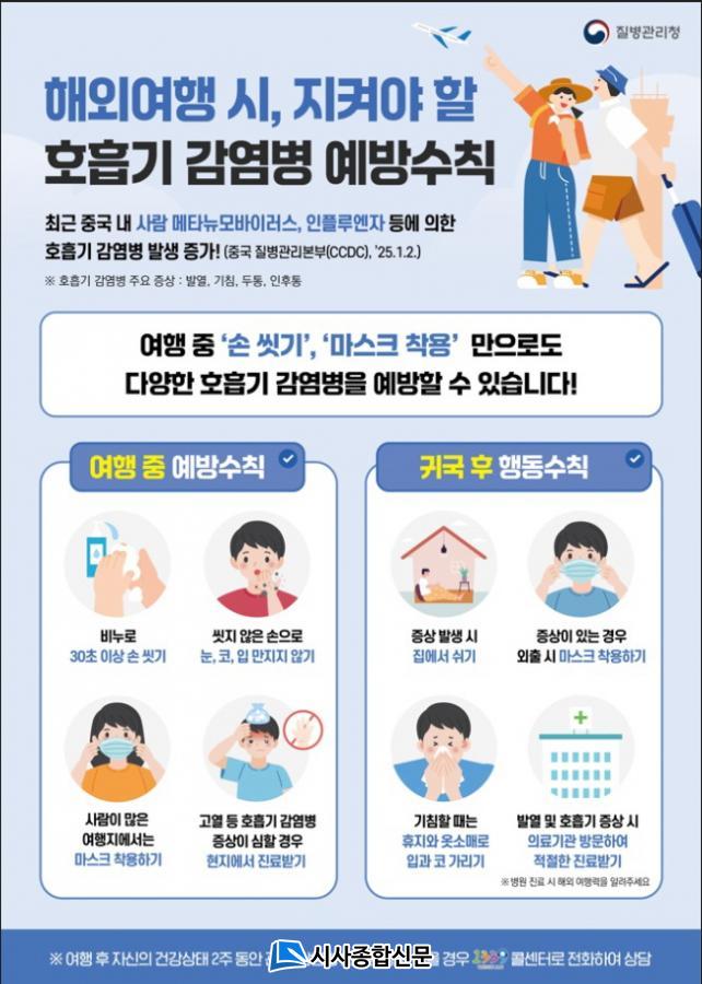 ¿©Çà ÈÄ ÀÔ±¹ ½Ã¿¡´Â ¹ß¿°ú ±âħ, µÎÅë, ÀÎÈÄÅë µî È£Èí±â °¨¿°º´ ÁÖ¿ä Áõ»óÀÌ ÀÖ´Ù¸é Áï½Ã °Ë¿ª°ü¿¡°Ô ½Å°íÇϰí, °ÅÁÖÁö µµÂø ÈÄ Áõ»óÀÌ ³ªÅ¸³¯ °æ¿ì´Â ÁÖº¯ Á¢ÃËÀ» ÃÖ¼ÒÈÇϰí ÀÇ·á±â°üÀ» ¹æ¹®ÇØ ÀÇ·áÁø¿¡°Ô ÇØ¿Ü¿©Çà·ÂÀ» ¾Ë·Á¾ß ÇÑ´Ù.