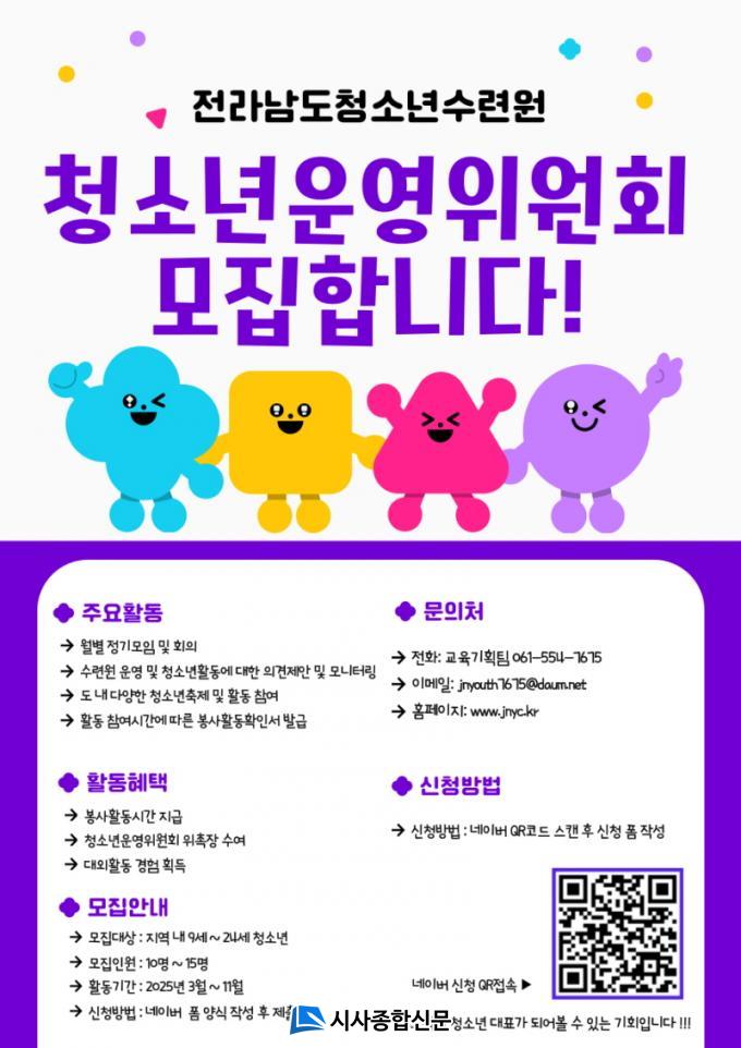 Áö¿ø ´ë»óÀº Àü¶ó³²µµ ³» °ÅÁÖÇÏ´Â 9¼¼¿¡¼ 24¼¼ û¼Ò³âÀ̸ç, Èñ¸ÁÀÚ´Â Àü¶ó³²µµÃ»¼Ò³â¼ö·Ã¿ø ȨÆäÀÌÁö ¹× SNS °øÁö»çÇ×À» Âü°íÇÏ¿©, ³×À̹ö ÆûÀ» ÀÛ¼ºÇØ Á¦ÃâÇÏ¸é µÈ´Ù. ÀÚ¼¼ÇÑ »çÇ×Àº Àü¶ó³²µµÃ»¼Ò³â¼ö·Ã¿ø ±³À°±âȹÆÀ(061-554-7675)·Î ¹®ÀÇÇÏ¸é µÈ´Ù