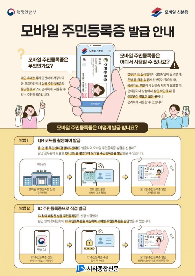 ¸ð¹ÙÀÏ Áֹεî·ÏÁõÀº Áֹεî·ÏÁõÀ» ¹ß±Þ¹ÞÀº 17¼¼ ÀÌ»ó ±¹¹ÎÀÌ Èñ¸ÁÇÒ °æ¿ì, Áֹμ¾Å͸¦ ¹æ¹®ÇØ ½ÅûÇÒ ¼ö ÀÖ´Ù. ¹ß±Þ ¹æ½ÄÀº ICÁֹεî·ÏÁõ°ú QRÄÚµå Áß ¼±ÅÃÇÒ ¼ö ÀÖÀ¸¸ç, ½ÅûÀÚ´Â º»ÀÎ ¸íÀÇÀÇ ÈÞ´ëÀüÈ¿¡ ¡®´ëÇѹα¹ ¸ð¹ÙÀÏ ½ÅºÐÁõ¡¯ ¾ÛÀ» ¼³Ä¡ÇØ¾ß ÇÑ´Ù.