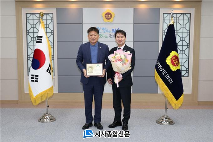 | ½ÅÀÇÁØ Àü³²µµÀÇ¿ø(ÁÂÃø ù ¹øÂ°)ÀÌ 2¿ù 5ÀÏ ¼öÇùÁß¾Óȸ·ÎºÎÅÍ °¨»çÆÐ¸¦ ¼ö¿©¹Þ¾Ò´Ù.