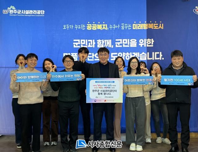 ¡®¾ÆÀÌ´Â ÇູÇϰí! û³âÀº Èñ¸ÁÀ» Ű¿ì¸ç! ³ëÀÎÀº º¸¶÷ÀÖ´Â ´ëÇѹα¹ÀÌ µÇµµ·Ï ¿ÏÁÖ±º ½Ã¼³°ü¸®°ø´ÜÀÌ ÇÔ²² ÇÕ´Ï´Ù¡¯¶ó´Â ½½·Î°ÇÀÌ ÀûÈù ÇÇÄÏÀ» µç ÀÌÈñ¼ö ÀÌ»çÀåÀº ¡°Àü ¼¼´ë°¡ Á¶È·Ó°Ô ¼ºÀåÇÒ ¼ö ÀÖ´Â »çȸÀû ºÐÀ§±â Á¶¼ºÀÌ Áß¿äÇÏ´Ù¡±¸ç ¡°ÃÖ»óÀÇ °ø°ø¼ºñ½º¸¦ Á¦°øÇØ ³ª°¡°Ú´Ù¡±°í ¹àÇû´Ù. ¶ÇÇÑ, °ø´Ü Á÷¿øµéµµ Ä·ÆäÀο¡ Âü¿©ÇØ ¡®¿ÏÁÖ¿¡¼ Ű¿ì´Â Èñ¸Á, ¾ÆÀÌ¿Í ÇÔ²²ÇÏ´Â ¹Ì·¡¡¯, ¡®È°±âÂù 100¼¼ ½Ã´ë, ¾î¸£½ÅÀÌ ÇູÇÑ ¿ÏÁÖ¡¯¶ó´Â ¸Þ½ÃÁö¸¦ ÀüÇß´Ù.