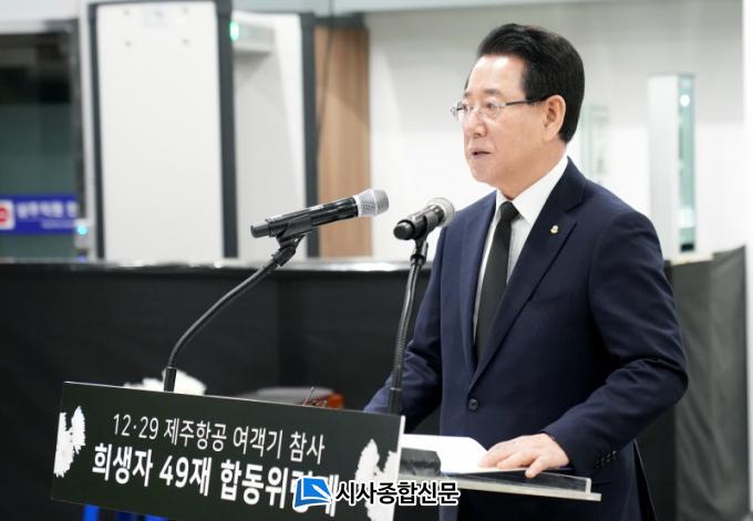 12¡¤29 Á¦ÁÖÇ×°ø ¿©°´±â Âü»ç À¯°¡Á·ÇùÀÇȸ¿Í ±¹Åä±³ÅëºÎ ÁÖÃÖÇϰí Àü¶ó³²µµ¿Í ±¤ÁÖ½Ã, ¹«¾È±ºÀÌ ÁÖ°üÇÑ À̳¯ Çà»ç´Â À¯°¡Á·°ú ±¹È¸ÀÇ¿ø, Á¤ºÎ¡¤ÁöÀÚü¡¤½ÃµµÀÇ¿ø µî 700¿© ¸íÀÌ Âü¼®ÇØ °íÀÎÀÇ ¾È½ÄÀ» ºô¾ú´Ù.