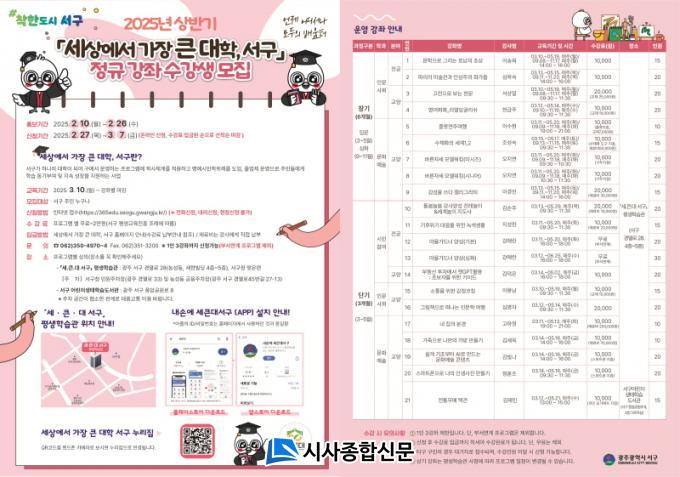 Àå±â °úÁ¤Àº ¡ãÀι®»çȸÇаú 4°³ °Á ¡ã¹®È¿¹¼úÇаú 4°³ °ÁÂ, ´Ü±â °úÁ¤Àº ¡ã½Ã¹ÎÂü¿©Çаú 5°³ ¡ãÀι®»çȸÇаú 2°³ °Á ¡ã¹®È¿¹¼úÇаú 5°³ °Á µî ÃÑ 3°³ Çаú 20°³ °Á·Π±¸¼ºµÅ ÀÖÀ¸¸ç, 3¿ù 10ÀϺÎÅÍ ¡¸¼¼․Å«․´ë ¼±¸¡¹Æò»ýÇнÀ°ü(°æ¿·Î 28, 4Ãþ~5Ãþ)°ú ¾î¸°ÀÌ»ýÅÂÇнÀµµ¼°ü¿¡¼ ÁøÇàµÈ´Ù.