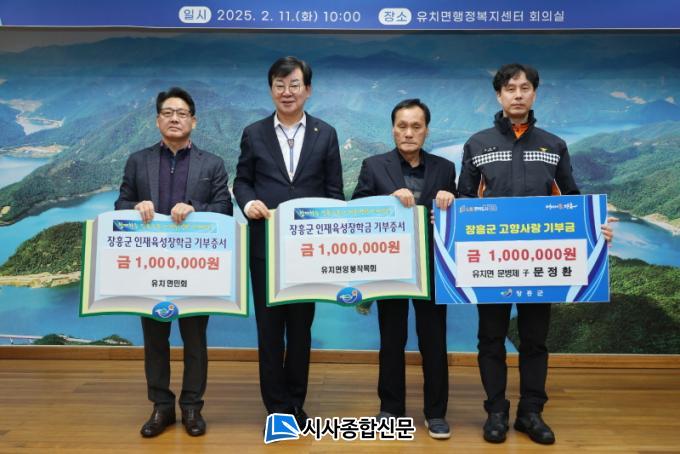 11ÀÏ À¯Ä¡¸é¿¡¼´Â À¯Ä¡¸é¹Îȸ(ȸÀå ¹®»óÈñ)¿Í À¯Ä¡¸é ¾çºÀÀÛ¸ñȸ(ȸÀå ¾È¹æ¿À)°¡ °¢°¢ 1¹é¸¸ ¿øÀ» ±âŹÇß°í, ºÎ»ê¸é¿¡¼´Â ºÎ»ê¸é û³âȸÀå À±ÇѼ® ¾¾°¡ 1¹é¸¸ ¿øÀ» ±âŹÇϸç ÀåÇÐ±Ý ±âŹ¿¡ µ¿ÂüÇß´Ù.