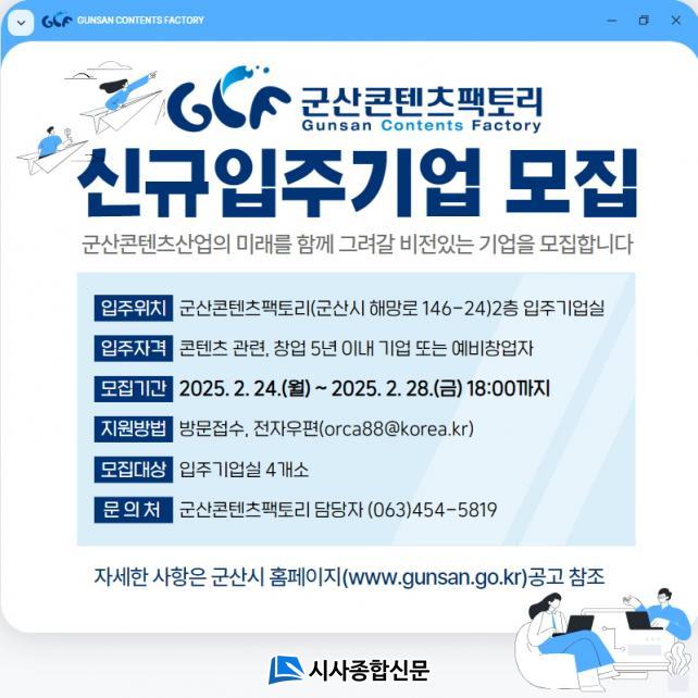 ÀÔÁÖ¸¦ ¿øÇÏ´Â ±â¾÷Àº ±º»ê½Ã ´©¸®Áý °í½Ã °ø°í ¶Ç´Â ±º»êÄÜÅÙÃ÷ÆÑÅ丮 ´©¸®Áý °øÁö»çÇ׿¡ °Ô½ÃµÈ ÀÔÁÖ½Åû¼¸¦ ÀÛ¼ºÇÑ ÈÄ ÄÜÅÙÃ÷ÆÑÅ丮(ÇØ¸Á·Î146-24) 3Ãþ ¿î¿µÁö¿ø½Ç·Î ¹æ¹®Çϰųª, ÀüÀÚ¿ìÆí(orca88@korea.kr)À¸·Î Á¢¼öÇÏ¸é µÈ´Ù.