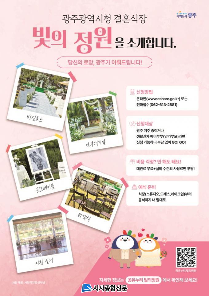 ±¤ÁÖ±¤¿ª½Ã(½ÃÀå °±âÁ¤)´Â ½Ãû»ç ³»‧¿ÜºÎ °ø°£À» Ȱ¿ëÇØ ¡®ºûÀÇ Á¤¿ø¡¯À̶ó´Â À̸§À¸·Î ¿¹½ÄÀåÀ» ¿î¿µÇÑ´Ù. µµ½É ¼Ó ÀÚ¿¬ÀÇ ¾Æ¸§´Ù¿òÀ» °£Á÷ÇÑ ½Ãû Àܵð±¤Àå°ú Àå¹Ì°ø¿ø, °íÁî³ËÇÑ ¼Ò³ª¹«½£, ½Ã¹ÎÀÌ ¸Ó¹«¸£°í ½ÍÀº 1Ãþ ½Ã¹ÎȦ µî ½Ç³»‧¿Ü ¾î´À °ø°£À̵ç ÀÌ¿ëÇÒ ¼ö ÀÖ´Ù.