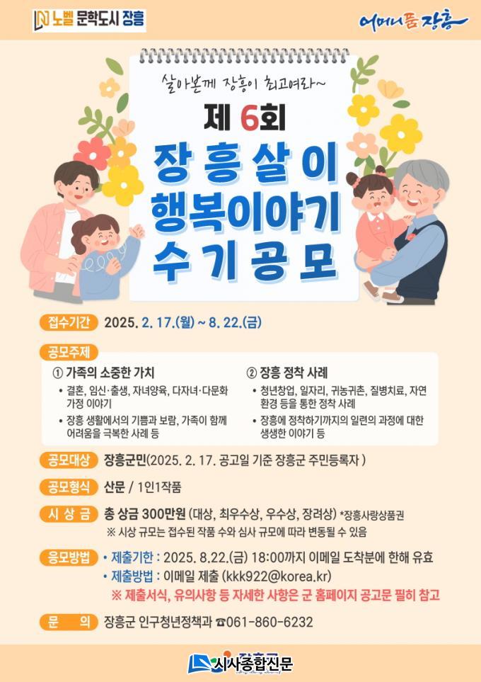 [½Ã»çÁ¾ÇսŹ® = ¿À½ÂÅà ±âÀÚ] ÀåÈﱺÀÌ ¡®Á¦6ȸ ÀåÈï»ìÀÌ ÇູÀ̾߱⠡¸»ì¾Æº»²² ÀåÈïÀÌ ÃÖ°í¿©¶ó¡¹¡¯ ¼ö±â °ø¸ð¸¦ 2¿ù 17ÀϺÎÅÍ 8¿ù 22ÀϱîÁö Á¢¼öÇÑ´Ù°í ¹àÇû´Ù.