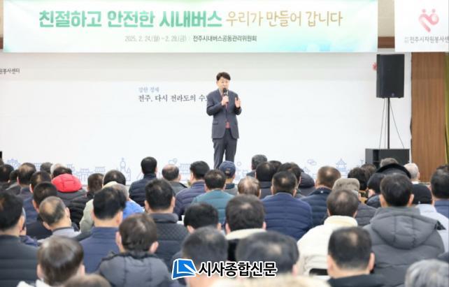 ¿ì¹ü±â ÀüÁÖ½ÃÀåÀº ¡°½Ã³»¹ö½º´Â µµ½É°ú ¿Ü°ûÀ» ¿¬°áÇÏ´Â µµ½ÃÀÇ Ç÷°ü°ú °°Àº ¿ªÇÒÀ» Çϸç, ½Ã¹Î°ú °ü±¤°´ÀÌ ¸ÅÀÏ ÀÌ¿ëÇÏ´Â Áß¿äÇÑ ±³Åë¼ö´Ü¡±À̶ó¸ç ¡°¿î¼öÁ¾»çÀںеéÀÇ Ä£Àý°ú ¾ÈÀüÀÌ °ð ÀüÁÖÀÇ À̹ÌÁö¿Í Á÷°áµÇ´Â ¸¸Å, ÀÚ±à½É°ú »ç¸í°¨À» °¡Áö°í ÀÓÇØÁÖ½Ã±æ ¹Ù¶õ´Ù¡±°í ¸»Çß´Ù.