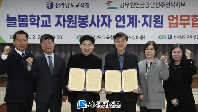 [½Ã»çÁ¾ÇսŹ® = ¿À½ÂÅà ±âÀÚ] Àü¶ó³²µµ±³À°Ã»(±³À°°¨ ±è´ëÁß)°ú °ø¹«¿ø¿¬±Ý°ø´Ü ±¤ÁÖÀüºÏÁöºÎ(ÁöºÎÀå Á¶¿µÃ¶)´Â 25ÀÏ Àü¶ó³²µµ±³À°Ã» ºñÁî´Ï½º½Ç¿¡¼ ¾÷¹«Çù¾àÀ» ü°áÇϰí, ´Ãº½Çб³¿¡ ÅðÁ÷°ø¹«¿ø ÀÚ¿øºÀ»çÀÚ ÀηÂÇ®À» ¿¬°è¡¤Áö¿øÇϱâ·Î Çß´Ù.