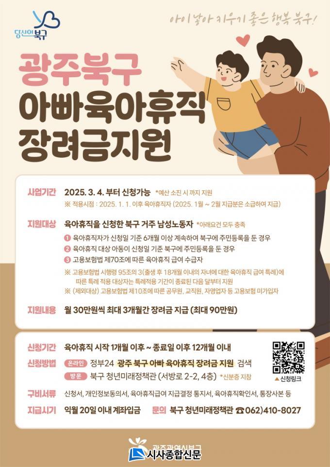 ¡®¾Æºü À°¾ÆÈÞÁ÷ Àå·Á±Ý¡¯ Áö¿øÀº ¾ÆÀÌ ³º¾Æ Ű¿ì±â ÁÁÀº ºÏ±¸ Á¶¼º»ç¾÷ÀÇ ÀÏȯÀ¸·Î À°¾ÆÈÞÁ÷ ÁßÀÎ ³²¼º ³ëµ¿ÀÚ¿¡°Ô ¿ù 30¸¸ ¿øÀÇ Àå·Á±ÝÀ» ÃÖ´ë 3°³¿ù°£ Áö±ÞÇÏ¿© ÈÞÁ÷¿¡ µû¸¥ °æÁ¦Àû ºÎ´ãÀ» ¿ÏÈÇÏ°í ³²¼ºÀÇ À°¾ÆÈÞÁ÷À» Àå·ÁÇϰíÀÚ ºÏ±¸¿¡¼ ¿ÃÇØ óÀ½ ÃßÁøÇÏ´Â ½ÃÃ¥ÀÌ´Ù.