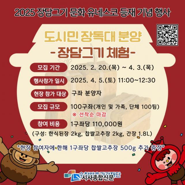 ƯÈ÷, Çà»çÀÇ ´ëÇ¥ ÇÁ·Î±×·¥ÀΡ®Àåµ¶´ë ºÐ¾ç üÇ衯Àº Âü°¡ÀÚµéÀÌ ¼øÃ¢ÀÇ ¸íÀΡ¤±â´ÉÀΰú ÇÔ²² ÀüÅë ¹æ½ÄÀ¸·Î ÀåÀ» ´ã±×°í, ¸íÀÎÀÇ Àåµ¶´ë¿¡¼ ¼÷¼ºµÈ ÀåÀ» °¢ °¡Á¤À¸·Î ¹è¼Û¹ÞÀ» ¼ö ÀÖ¾î ¸Å³â Á¶±â ¸¶°¨µÉ Á¤µµ·Î ÀαⰡ ³ô´Ù. Âü°¡ºñ´Â 1ÆÀ(1±¸Á ±âÁØ)´ç 110,000¿øÀ̸ç, ÃÑ 100ÆÀ ÇÑÁ¤À¸·Î ¼±Âø¼ø ¸ðÁýÇÑ´Ù.