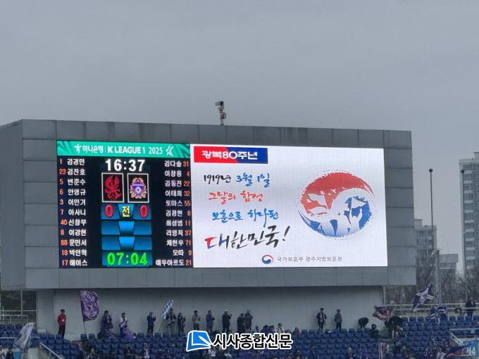 [½Ã»çÁ¾ÇսŹ® = ¿À½ÂÅà ±âÀÚ] ±¹°¡º¸ÈƺΠ±¤ÁÖÁö¹æº¸ÈÆÃ»Àº 3.1.(Åä)¿¡ ±¤º¹80ÁÖ³â ¹× 3¡¤1ÀýÀ» ¸ÂÀÌÇÏ¿© ±¤ÁÖFC¿Í ÇÔ²² ±¤ÁÖ¿ùµåÄŰæ±âÀå¿¡¼ ¿¸®´Â FC¾È¾ç°úÀÇ È¨°æ±â¿¡¼ µ¶¸³À¯°øÀÚ ÈÄ¼Õ ½ÃÃà À̺¥Æ®¸¦ ÁøÇàÇÏ¿´´Ù.