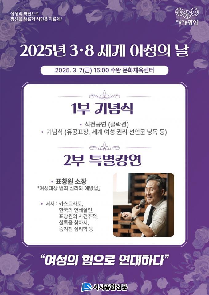 ±¤»ê±¸´Â 7ÀÏ ¿ÀÈÄ 3½Ã ¼ö¿Ï¹®ÈüÀ°¼¾ÅÍ¿¡¼ ¡®¿©¼ºÀÇ ÈûÀ¸·Î ¿¬´ëÇÏ´Ù¡¯¶ó´Â ±¸È£·Î 3‧8 ¼¼°è ¿©¼ºÀÇ ³¯ ±â³äÇà»ç¸¦ °³ÃÖÇÑ´Ù°í ¹àÇû´Ù.
