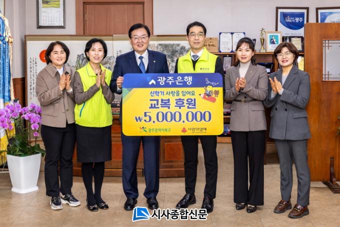 '½ÅÇб⠻ç¶ûÀ» ÀÔ¾î¿ä¡¯ ±³º¹ ÈÄ¿ø »ç¾÷Àº ±³º¹ ¹× Ȱµ¿º¹ ±¸ÀÔ¿¡ ¾î·Á¿òÀ» °Þ´Â ½ÅÇбâ Çлýµé¿¡°Ô µµ¿òÀ» ÁÖ±â À§ÇÑ ±¤ÁÖÀºÇàÀÇ »çȸ°øÇå »ç¾÷ÀÇ ÀÏȯÀ¸·Î, ±¤ÁÖ±¤¿ª½Ã ºÏ±¸Ã»ÀÇ ÃßõÀ» ¹Þ¾Æ ±³º¹ Áö¿øÀÌ ÇÊ¿äÇÑ 10¸íÀÇ ÇлýµéÀ» ¼±Á¤Çϰí, ±¤ÁÖ»çȸº¹Áö°øµ¿¸ð±Ýȸ¸¦ ÅëÇØ ÇØ´ç Çлýµé¿¡°Ô ±³º¹ ¹× Ȱµ¿º¹ ±¸ÀÔºñ¸¦ Áö¿øÇϸç Èñ¸ÁÀ» ¼±¹°ÇÑ´Ù.