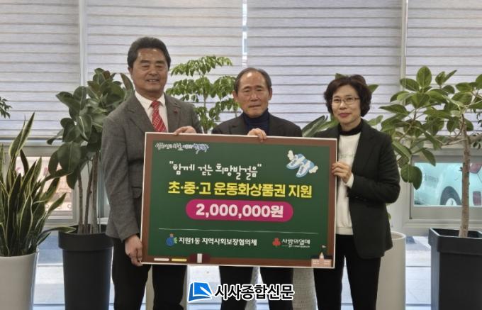 ¡®Èñ¸Á¹ß°ÉÀ½ ¿îµ¿È Áö¿ø »ç¾÷¡¯Àº Áö¿ø1µ¿ Áö»çÇùÀÇ Æ¯È»ç¾÷ÀÌ´Ù. »çȸº¹Áö°øµ¿¸ð±Ýȸ ÁöÁ¤ ±âʱÝÀ» Ȱ¿ëÇØ µ¹º½ ÀÌ¿ô Çлý 20¸í¿¡°Ô ¿îµ¿È »óǰ±ÇÀ» Áö¿øÇÔÀ¸·Î½á °æÁ¦Àû ºÎ´ãÀ» °æ°¨Çϰí ÇлýµéÀÌ °Ç°ÇÏ°Ô Çб³»ýȰÀ» ÇÒ ¼ö ÀÖµµ·Ï ÀÀ¿øÇϱâ À§ÇØ ÃßÁøµÆ´Ù.