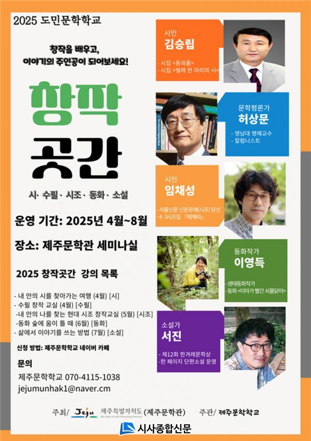 Á¦ÁÖÆ¯º°ÀÚÄ¡µµ¿Í Á¦ÁÖ¹®ÇÐÇб³°¡ ÁÖÃÖ¡¤ÁÖ°üÇÏ´Â À̹ø ÇÁ·Î±×·¥Àº ½Ã, ¼öÇÊ, ½ÃÁ¶, µ¿È, ¼Ò¼³ µî 5°³ ¹®ÇÐ À帣º° ¸ÂÃãÇü °Á·Π±¸¼ºµÇ¸ç, âÀÛÀ» ¹è¿ì°í ½ÍÀº µµ¹Î ´©±¸³ª ½ÅûÇÒ ¼ö ÀÖ´Ù.