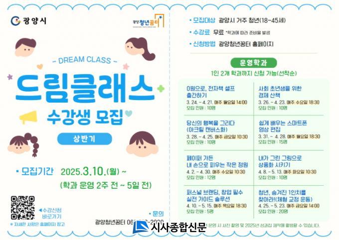 Á¶µ¿¼ö ±¤¾ç½Ã û³âÀÏÀÚ¸®°úÀåÀº ¡®µå¸²Å¬·¡½º´Â û³âµéÀÇ ²Þ°ú ¼ºÀåÀ» Áö¿øÇϱâ À§ÇÑ »ç¾÷À¸·Î, Àç´ÉÀִ û³âµé ´öºÐ¿¡ À̹ø »ó¹Ý±â¿¡´Â ¿µ»óÆíÁýºÎÅÍ Ã¢¾÷ °¡À̵å, üÇü±³Á¤ µî ¿©·¯ ºÐ¾ß¿¡ °ÉÃÄ Çаú°¡ °³¼³µÆ´Ù¡°°í ¹àÇû´Ù. À̾î, ¡°»ó¹Ý±â 8°³ Çаú¸¦ ¿î¿µÇÑ ÈÄ ¿À´Â 9¿ùºÎÅÍ´Â ÇϹݱâ Çаú¸¦ ÁøÇàÇÒ °èȹ¡±À̶ó¸ç ¡°µå¸²Å¬·¡½º¿¡ û³âµéÀÇ ¸¹Àº °ü½É°ú Âü¿©¸¦ ¹Ù¶õ´Ù¡±°í ÀüÇß´Ù.