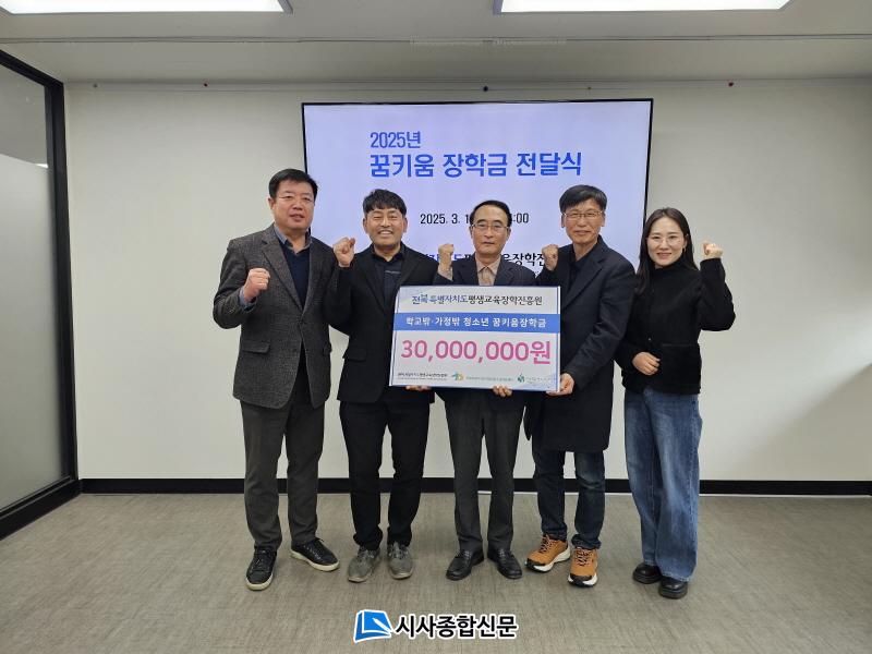 À̳¯ ÀåÇÐ±Ý Àü´Þ½Ä¿¡´Â ÀüºÏƯº°ÀÚÄ¡µµÆò»ý±³À°ÀåÇÐÁøÈï¿øÀÇ ÀÌÇö¿õ ¿øÀåÀ» ºñ·ÔÇÏ¿©, ÀÌ»ó¿° ÀüºÏƯº°ÀÚÄ¡µµÃ»¼Ò³â»ó´ãº¹Áö¼¾ÅÍÀå, Á¤ÁøÇØ ÀüÁÖǪ¸¥¿©Àڴܱâû¼Ò³â½°ÅÍÀåÀÌ Âü¼®ÇØ ÀÚ¸®¸¦ ºû³Â´Ù. Âü¼®ÀÚµéÀº °æÁ¦Àû ¾î·Á¿ò ¼Ó¿¡¼µµ Èñ¸ÁÀ» ÀÒÁö ¾Ê°í ¹Ì·¡¸¦ ÇâÇØ ³ª¾Æ°¡´Â û¼Ò³âµéÀ» °Ý·ÁÇϸç, ¾ÕÀ¸·Îµµ Áö¼ÓÀûÀÎ °ü½É°ú Áö¿øÀ» ¾Æ³¢Áö ¾Ê°Ú´Ù°í ¶æÀ» ¸ð¾Ò´Ù.