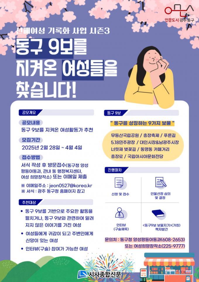 ¼±¹è ¿©¼º ±â·ÏÈ »ç¾÷Àº ±×µ¿¾È ¾Ë·ÁÁöÁö ¾ÊÀº ¼±¹è ¿©¼ºµéÀÇ »î°ú Ȱµ¿À» ¹ß±¼ÇÏ°í ±â·ÏÇØ À̸¦ ³Î¸® ¾Ë¸®°í ÈÄ¹è ¿©¼ºµé¿¡°Ô ·Ñ¸ðµ¨(±Í°¨)ÀÌ µÉ ¼ö ÀÖµµ·Ï ±âȹµÆ´Ù. 2023³â ¡®¿ì¸® µ¿³× Å« ¾ð´Ï1¡¯, 2024³â ¡®¿ì¸® µ¿³× Å« ¾ð´Ï2¡¯¿¡ ÀÌ¾î ¿ÃÇØ ¼¼ ¹øÂ°·Î ÁøÇàµÇ´Â À̹ø »ç¾÷Àº ¡®µ¿±¸ 9º¸¸¦ ÁöÄѿ º¸¹°Áö±â¡¯¶ó´Â ÁÖÁ¦·Î, µ¿±¸¸¦ ´ëÇ¥ÇÏ´Â 9°³ÀÇ º¸¹°À» ÁöÄѿ ¿©¼ºµéÀÇ À̾߱⸦ ´ã°íÀÚ ÇÑ´Ù.