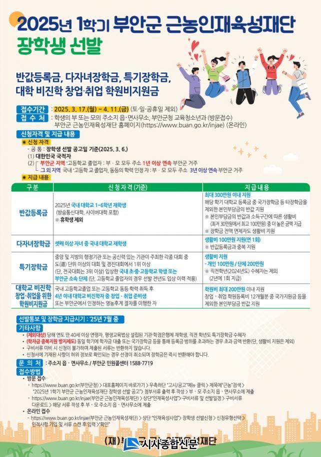 ÀåÇÐ±Ý ½Åû Á¢¼ö´Â ÇлýÀÇ ºÎ ¶Ç´Â ¸ð ÁÖ¼ÒÁö À¾¡¤¸é»ç¹«¼Ò¿¡¼ ½Åû¹ÞÀ¸¸ç ÁúÀÇ »çÇ×Àº ºÎ¾È±º ¹Î¿øÄݼ¾ÅÍ(¢Ï 1588-7719) ¹× À¾¡¤¸é»ç¹«¼Ò Ãѹ«ÆÀ, ºÎ¾È±ºÃ» ±³À°Ã»¼Ò³â°ú·Î ¹®ÀÇÇϰųª ±Ù³óÀÎÀçÀ°¼ºÀç´Ü ¶Ç´Â ºÎ¾È±ºÃ» ȨÆäÀÌÁö¸¦ ÅëÇØ ÀÚ¼¼ÇÑ ³»¿ëÀ» È®ÀÎÇÒ ¼ö ÀÖ´Ù. ¶Ç Á¢¼öó¿¡ Á÷Á¢ ¹æ¹®ÇÏÁö ¾Ê°í ±Ù³óÀÎÀçÀ°¼ºÀç´Ü ȨÆäÀÌÁö¿¡¼ ¿Â¶óÀÎÀ¸·Îµµ ½Åû °¡´ÉÇÏ´Ù.