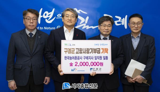 À̳¯ ±¸·Ê±ºÃ»¿¡¼ ¿¸° ±âŹ½Ä¿¡´Â ±è¼øÈ£ ±¸·Ê±º¼ö¿Í ÀÓ¹®Èñ Áö»çÀå µîÀÌ Âü¼®ÇÏ¿´À¸¸ç, ÀÓ¹®Èñ Áö»çÀåÀÌ ÀÓÁ÷¿ø 20¿© ¸íÀÌ ¸ð±ÝÇÑ °íÇâ»ç¶û±âºÎ±Ý 200¸¸ ¿øÀ» ±è¼øÈ£ ±¸·Ê±º¼ö¿¡°Ô Àü´ÞÇÏ¿´´Ù.