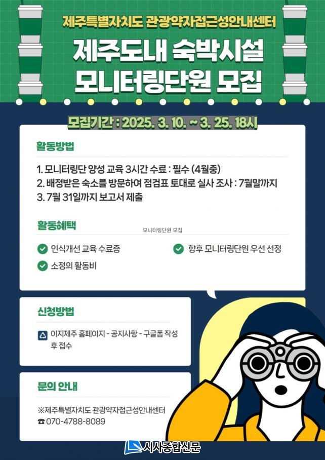 ¸ð´ÏÅ͸µ´Ü Âü°¡ ½ÅûÀº ¿À´Â 3¿ù 25ÀϱîÁöÀ̸ç, ½ÅûÀº ÀÌÁöÁ¦ÁÖ È¨ÆäÀÌÁö °øÁö»çÇ׿¡ °Ô½ÃµÈ ±¸±Û ÆûÀ» ÅëÇØ °¡´ÉÇÏ´Ù.(https://forms.gle/jcPV9AarmAbL5qU36 ) ÀÚ¼¼ÇÑ »çÇ×Àº Á¦ÁÖÆ¯º°ÀÚÄ¡µµ °ü±¤¾àÀÚÁ¢±Ù¼º¾È³»¼¾ÅÍ(¢Ï070-4788-8089)·Î ¹®ÀÇÇÏ¸é µÈ´Ù.