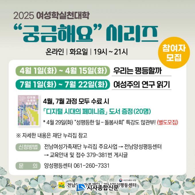 4¿ù¿¡´Â ¡®¿ì¸®´Â ÆòµîÇұ¸¦ ÁÖÁ¦·Î ¾öÇýÁø ±³¼ö(°æÈñ´ë Èĸ¶´ÏŸ½ºÄ®¸®Áö)ÀÇ °Àǰ¡ ÀÖ´Ù. µµ¹Î°úÀÇ Á¢Á¡ È®´ë¸¦ À§ÇØ ¿©¼ºÁÖÀÇ µµ¼ ÀúÀÚ¿ÍÀÇ ¸¸³²À» Áö¿ª µµ¼°ü, ÀÛÀº ¼Á¡ µî°ú ¿¬°èÇÏ¿© ¡®Ã£¾Æ°¡´Â ¿©¼ºÇнÇõ´ëÇС¯µµ ¿î¿µÇÒ °èȹÀÌ´Ù. 7¿ù¿¡´Â ¡®¿©¼ºÁÖÀÇ ¿¬±¸ Àб⡯¸¦ ÁÖÁ¦·Î ¿¬±¸ÀÚ¸¦ ÃʺùÇÏ¿© º¯ÈÇÏ´Â ½Ã´ëÀÇ »õ È帧À» ÇÔ²² ÇнÀÇÒ ¿¹Á¤ÀÌ´Ù.
