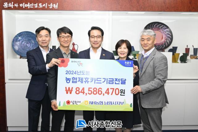 [½Ã»çÁ¾ÇսŹ® = ¿À½ÂÅà ±âÀÚ] ³²¿ø½Ã´Â Áö³ 12ÀÏ NH³óÇù ³²¿ø½ÃÁöºÎ¿¡¼ 2024³âµµ ÇÑ ÇØ µ¿¾È »ç¿ëÇÑ ³²¿ø½Ãû Á¦ÈÞÄ«µå Àû¸³±Ý 8,450¿©¸¸¿øÀ» ³²¿ø½Ã¿¡ Àü´ÞÇß´Ù°í ¹àÇû´Ù.