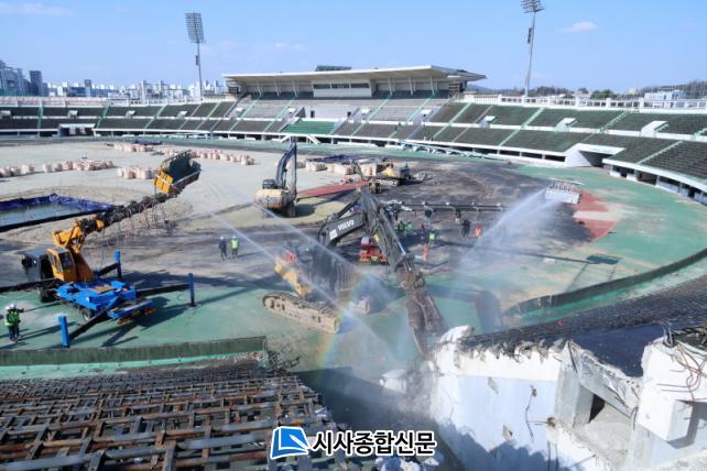 ÀüÁֽô 17ÀÏ ÀüÁÖÁ¾ÇÕ°æ±âÀå ºÎÁö¸¦ ÄÁº¥¼Ç¼¾ÅÍ Áß½ÉÀÇ Àü½Ãº¹ÇÕ»ê¾÷(MICE) ´ÜÁö·Î Á¶¼ºÇϱâ À§ÇØ ±âÁ¸ ºÎÁö ³» ¸¶Áö¸·À¸·Î ³²¾ÆÀÖ´ø ÁÖ°æ±âÀåÀÇ ±¸Á¶¹° ö°Å¿¡ µ¹ÀÔÇß´Ù.