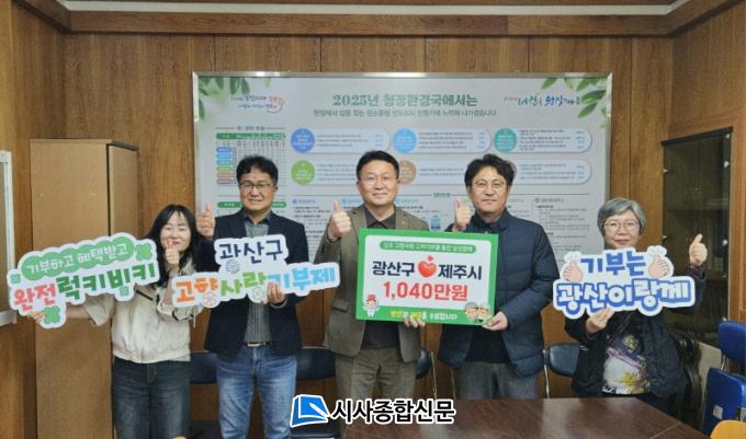 ±¤»ê±¸´Â Áö³ 14ÀÏ Á¦ÁÖ½ÃûÀ» ¹æ¹®ÇØ ÀÚÄ¡ÇàÁ¤±¹(±¹Àå ¾öº¸Çö)°ú ûÁ¤È¯°æ±¹(±¹Àå ÇѼºÃ¶) °£ »óÈ£Çù·Â °È¸¦ À§ÇÑ Çù¾àÀ» ÃßÁøÇß´Ù. ±¤»ê±¸¿Í Á¦Áֽô Á÷¿ø 104¸íÀÇ ÀÚ¹ßÀûÀÎ Âü¿©·Î µÎ ÁöÀÚü °£ ¿ìÈ£ ÁõÁø°ú ±âºÎ ¹®È Á¶¼ºÀ» À§ÇØ 1,040¸¸ ¿øÀ» ±³Â÷ ±âºÎÇß´Ù.