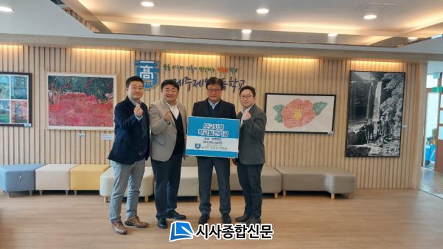 [½Ã»çÁ¾ÇսŹ® = °í¼º¹Î ±âÀÚ] Á¦ÁÖÁ¦ÀϰíµîÇб³(±³Àå °íµ¿Çö) Á¦37ȸ ±è±âÇÑ, Á¤ÀçÈ£, ÇÑÁ¤È£ µ¿¹® 3¸íÀº Áö³ 14ÀÏ ¸ð±³¸¦ ¹æ¹®ÇØ Çб³¹ßÀü±â±Ý 300¸¸ ¿øÀ» Àü´ÞÇϸç ÈĹèµéÀ» À§ÇÑ ¶æ±íÀº ³ª´®À» ½ÇõÇß´Ù.