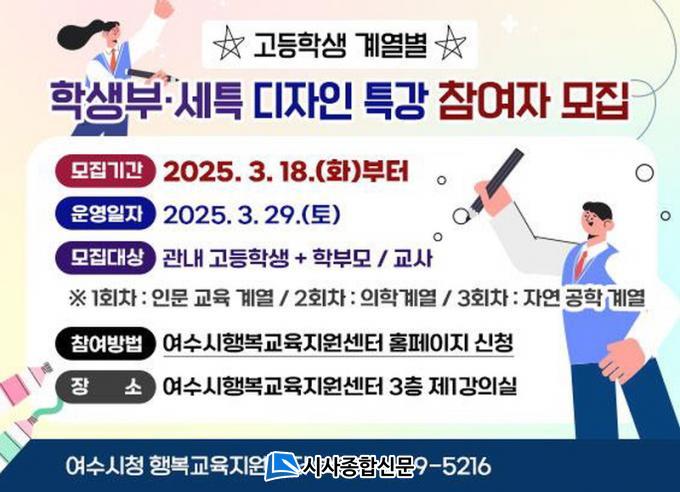 ¸ðÁý ÀοøÀº 160¸íÀ̸ç, Âü¿©¸¦ Èñ¸ÁÇÏ´Â Çлý, Çкθð, ±³»ç´Â 18ÀϺÎÅÍ ¿©¼ö½ÃÇູ±³À°Áö¿ø¼¾ÅÍ ´©¸®Áý(www.yeosu.go.kr/edu)¿¡¼ ½ÅûÇÏ¸é µÈ´Ù.